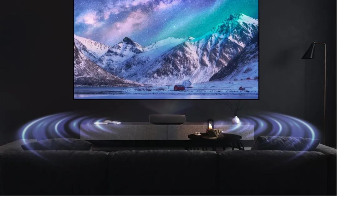 傳統家用投影機的投射比主要集中在1.2:1-1.4:1這個范圍,投100吋畫面需要2.5米以上的距離。而超短焦投影機使用的是超廣角鏡頭,投射比<0.4,一般0.5米就能投出100吋的畫面,這就意味著超短焦投影機可以安裝在非?拷聊坏奈恢蒙,對安裝空間要求小,小房間也能投出大畫面,對于小戶型房間非常適合。