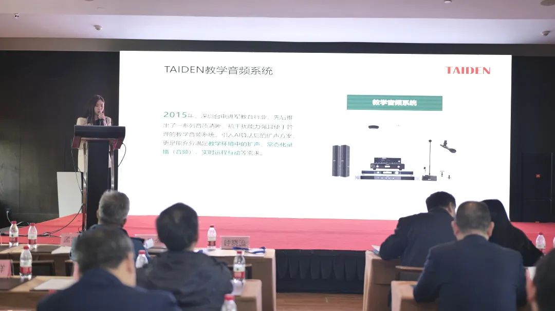 研討會現場,參會領導、專家和學者們圍繞數字化轉型展開熱烈討論。深圳市臺電實業有限公司發表了主題為“多種教學環境音頻解決方案”演講。通過對小型多媒體教室、演示型/交互型智慧教室、遠程互動型智慧教室,以及階梯教室這四種常見的教學場景來剖析用戶痛點,給出能夠充分滿足教學環境中的擴聲、常態化錄音、互動錄播、教室多媒體設備集中控制的需求,解決設備管理和充電難題,完全杜絕了傳統無線麥克風射頻輻射的高品質、綠色環保的教室音頻整體解決方案。