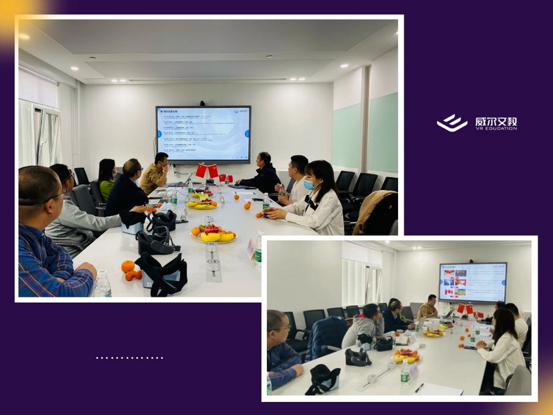 經過分享和討論,大家對威爾文教的XR思政產品產生濃厚興趣,遂安排大家來到威爾文教展廳參觀、體驗。一并了解了威爾文教的K12及高職教XR產品。體驗后,威爾文教在XR教育領域的技術優勢和積累得到大家的肯定和認可。