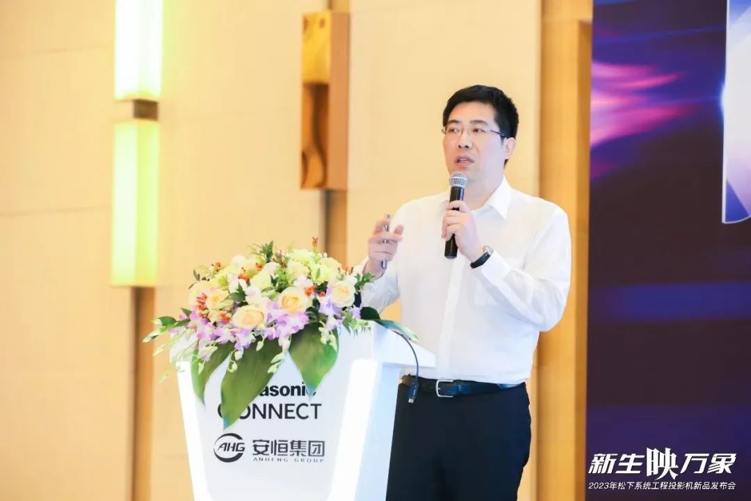 大會伊始,松下電器(中國)有限公司 系統投影解決方案營銷公司總經理鄒博宇先生進行致辭。鄒總表示,松下投影機一直秉承變革創新的理念,并將多年的技術積累與松下“為人類創造美好生活”的品牌精神相結合,引領投影機產品的開發和制造。在嶄新的2023年中,松下系統工程投影機已經做好了準備,以嶄新的姿態,迎接全新的挑戰,通過優秀的新產品,來滿足中國投影市場多樣化的需求。同時,鄒總還表示松下電器與安恒集團已經保持了十五年良好穩定深入互信的合作關系,未來將繼續共同面向客戶,為客戶提供強有力的產品和解決方案,向客戶展現出松下與安恒的實力。發揮企業社會職責,通過產品迭代與技術創新,推動視頻行業快速發展。