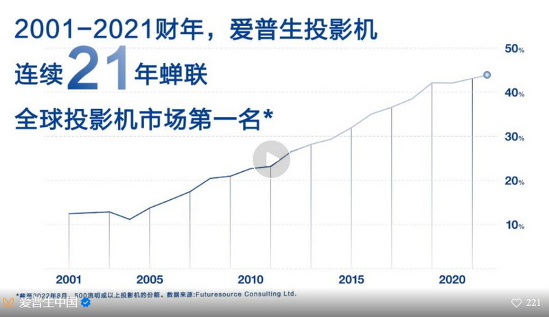*1 截至2022年8月,500流明或以上投影機的份額。數據來源于 Future Source(自 2001 年起,按愛普生財年計算)。