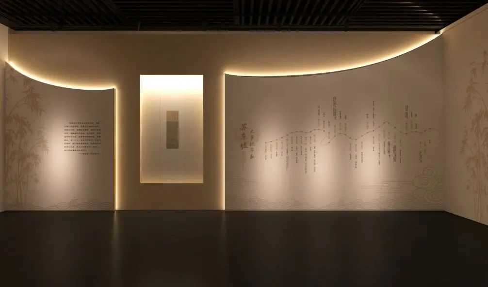 在不同區(qū)域設有東坡著名詩篇的墻面投影,既豐富了展覽內容,又能喚起觀眾的共情。蘇東坡愛竹的高潔、堅韌,曾寫下“可使食無肉,不可居無竹”,“竹”的元素貫穿展覽,既拉近了觀眾與蘇東坡的距離,又營造了一臺詩情畫意的展覽。
