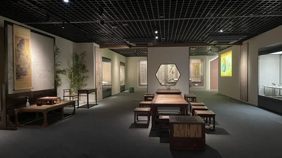 “宋人雅事”場景,以宋式家具還原宋人的四事四藝,點茶、焚香、掛畫、插畫和琴棋書畫,讓觀眾有穿越宋朝的感覺;
