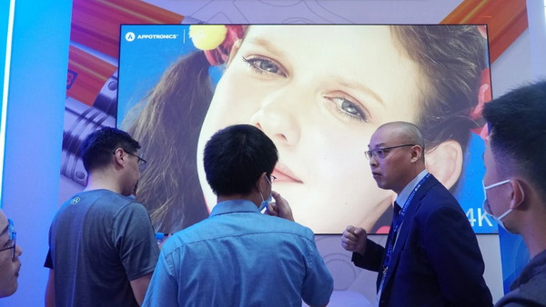 除此之外,現場還帶來了100吋的光峰4K超高清顯示方案。由光峰4K超短焦激光投影機搭配光峰抗光幕。4K,5000流明以上的激光投影機,有了抗光幕幕的加持,整個畫面更加細膩明亮,色彩鮮亮。
