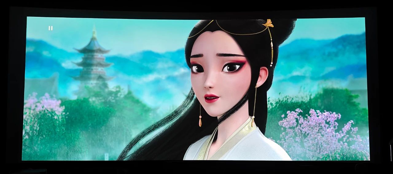 由于N59的投射比無法投滿我的220寸幕布,根據現場投射出的畫面尺寸來看只有190寸左右,以下屏攝均基于190寸幕布的實拍(手機拍攝)。