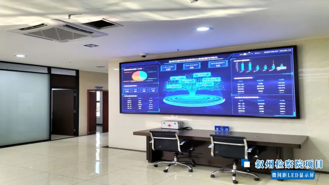 敘州人民檢察院項(xiàng)目采用Voury卓華微間距系列LED顯示屏拼接而成,具有低亮高灰、無縫拼接、高分辨率等顯示效果,受到了客戶的一致好評(píng)。有效提升拼接屏幕的易用性,提升敘州檢察院使用體驗(yàn),有力地推動(dòng)智慧檢察信息化發(fā)展。