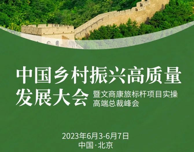 重磅推薦:【北京站】2023年6月3-7日·中國鄉村振興高質量發展大會暨文商旅標桿項目實操高端照片總裁峰會(15718870746)