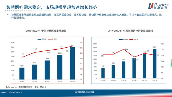 智慧醫療需求穩定:2022年市場規模超過3500億,投資增長20%