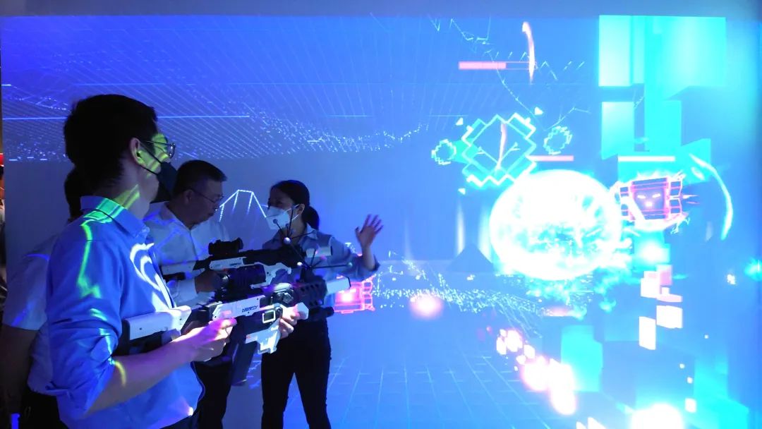 領(lǐng)導(dǎo)巡展期間,石景山區(qū)李新區(qū)長(zhǎng)來(lái)到我們的展區(qū)體驗(yàn)了Pandora所塑造的沉浸式射擊游戲,并與產(chǎn)品同事進(jìn)行深入交流,對(duì)我們的產(chǎn)品和相關(guān)技術(shù)進(jìn)行了解。