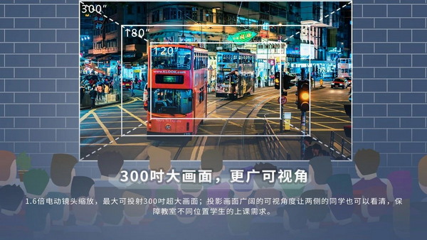 得益于激光投影機更高的亮度和對比度,可以高品質穩定投射出相對更大的畫面,實現大屏幕投影滿足教室更多方向的觀影需求。