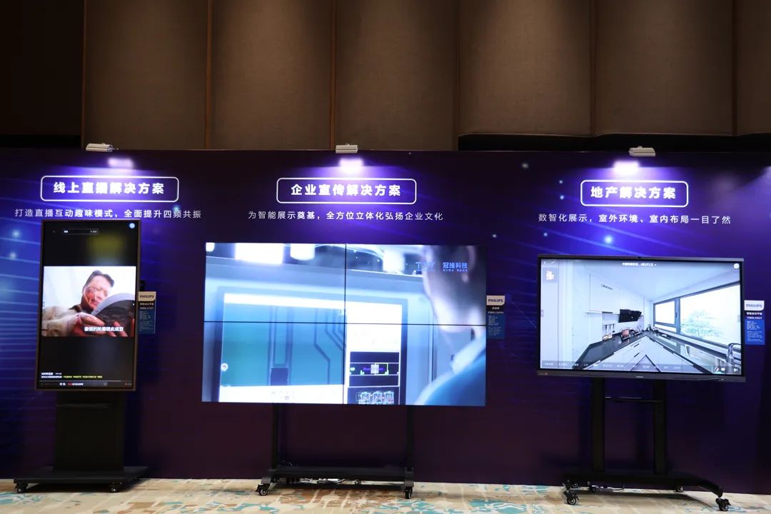 現(xiàn)場特設產(chǎn)品集中展示區(qū),展出雙流視頻會議解決方案、直播解決方案、黨建解決方案、金融解決方案、地產(chǎn)解決方案、新零售應用解決方案等不同應用場景的全生態(tài)解決方案。通過對產(chǎn)品的實際深入體驗,與會嘉賓們對飛利浦商顯專業(yè)化、一體化、定制化的多元解決方案,以及戰(zhàn)略布局、產(chǎn)品規(guī)劃有了更加深刻的認知。
