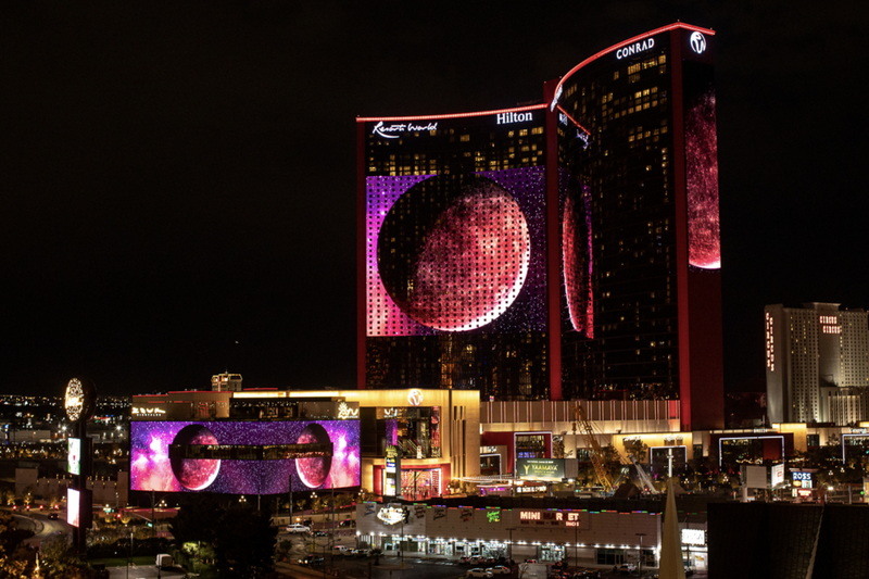Moment Factory與Resorts World Las Vegas合作開(kāi)發(fā)了全新的新媒體視覺(jué)內(nèi)容,它迅速成為了這座位于拉斯維加斯大道上的賭場(chǎng)度假村其品牌的核心元素和亮點(diǎn)。