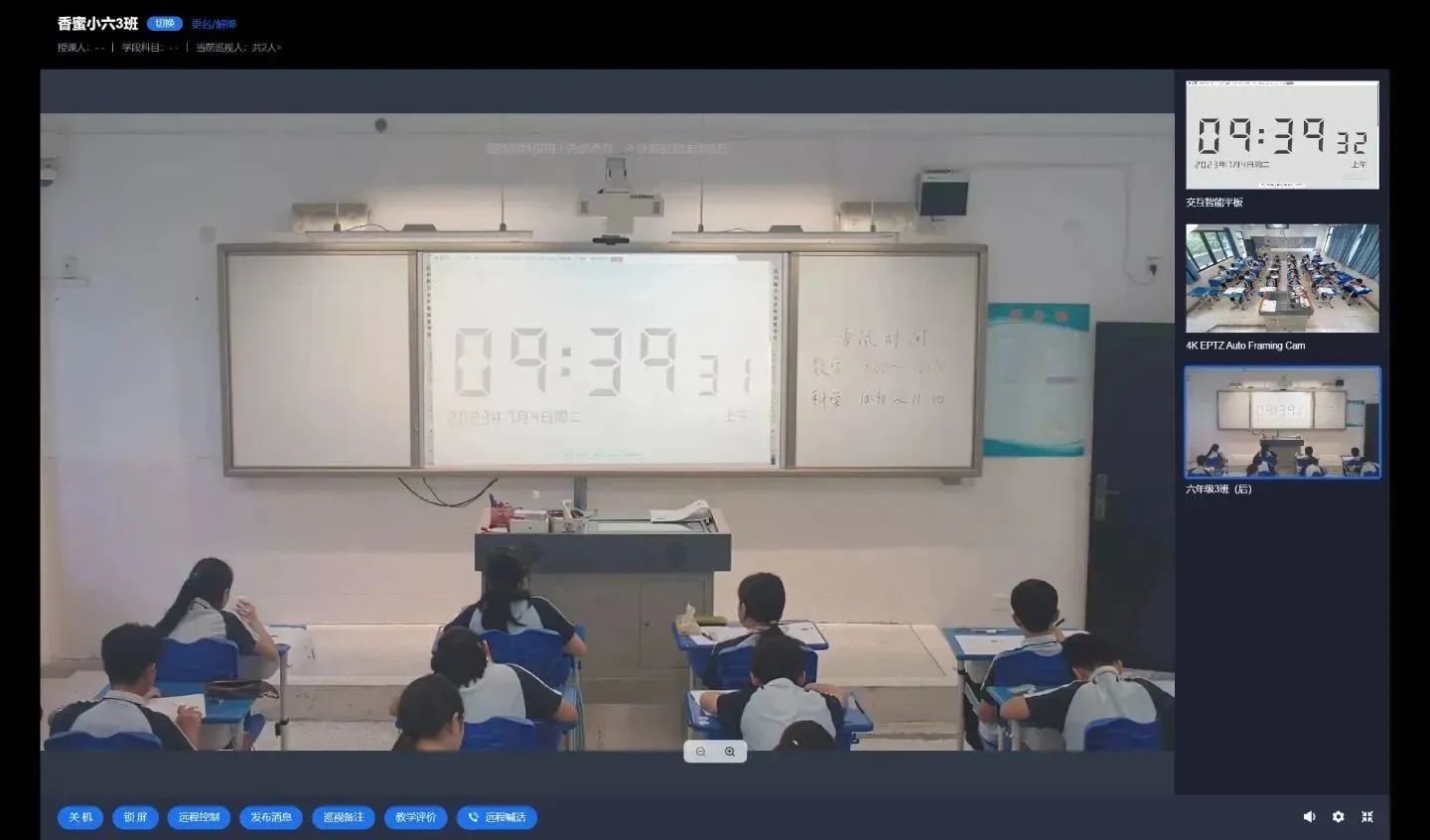 早年間,學校全面部署了ClassIn設備用于建設常態化錄播教室。在希沃魔方·設備管理應用的協助下,其攝像頭的畫面統一接入平臺,老師可以在管理后臺上,同時看到設備畫面、攝像頭畫面、第三路畫面,提高教室設備的利用效率。