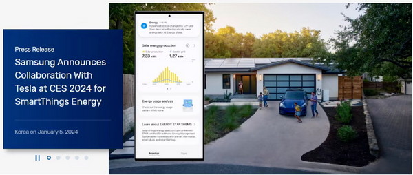 而在場景的構(gòu)建上,自然離不開“車家”二字。三星宣布與特斯拉、現(xiàn)代、起亞等汽車品牌的合作,核心重點為場景打通、AI驅(qū)動。例如,三星與特斯拉的集成式服務(wù),打通SmartThings Energy平臺與特斯拉能源產(chǎn)品的連接。與現(xiàn)代、起亞汽車的合作,驅(qū)動SmartThings平臺在“家到車”、“車到家”等場景的綜合體驗提升。