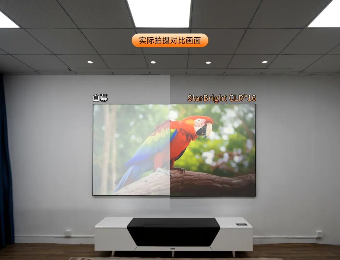 為了更好地讓您體驗到 StarBright CLR®16 的優勢,我們特地為您準備了與傳統白幕的實拍對比。通過對比,您將直觀地感受到 StarBright CLR®16 在提升投影畫質、對比度和色彩表現方面的卓越性能。同時,我們也為您提供了關于投影機擺放位置的建議,以便您能獲得最佳的觀影效果。
