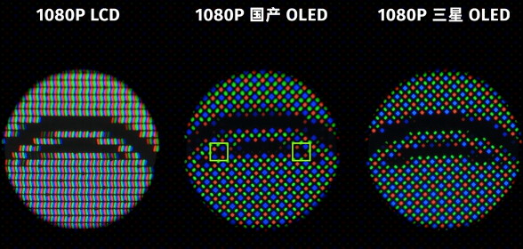 先給大家做一點(diǎn)簡單的科普,OLED 的像素并不是 RGB 1:1:1 的,像主流的鉆石排列,紅藍(lán)就各少了一半的像素,這時(shí)候如果顯示一個(gè)白點(diǎn),只點(diǎn)亮 RGB 三個(gè)像素可能就不夠,還需要從旁邊借像素,來確保顏色和形狀盡可能的還原,這就是次像素渲染算法。