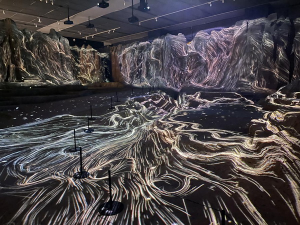 發(fā)生、興盛于黃土高原的陜北民歌,是黃土高原的文化符號,飽含著陜北人的精神寄托,承載著陜北人的人生故事。此次展覽在室內(nèi)“復(fù)原”搭建了黃土高坡山峁峁、崖洼洼的山貌,依托NEC新杰克系列8300流明高亮度、WUXGA高清分辨率,清晰細膩的畫質(zhì)及卓越的色彩表現(xiàn)力,十余臺NEC新杰克系列打造的3D Mapping山體光影秀,將黃土高原的千溝萬壑、廣袤雄渾更生動地呈現(xiàn)給觀眾,配合藝術(shù)家們現(xiàn)場的民歌演繹,仿若透過光影的時光隧道,看到粗獷的陜北壯漢、率真的陜北姑娘在這片土地上的苦樂和愛憎。