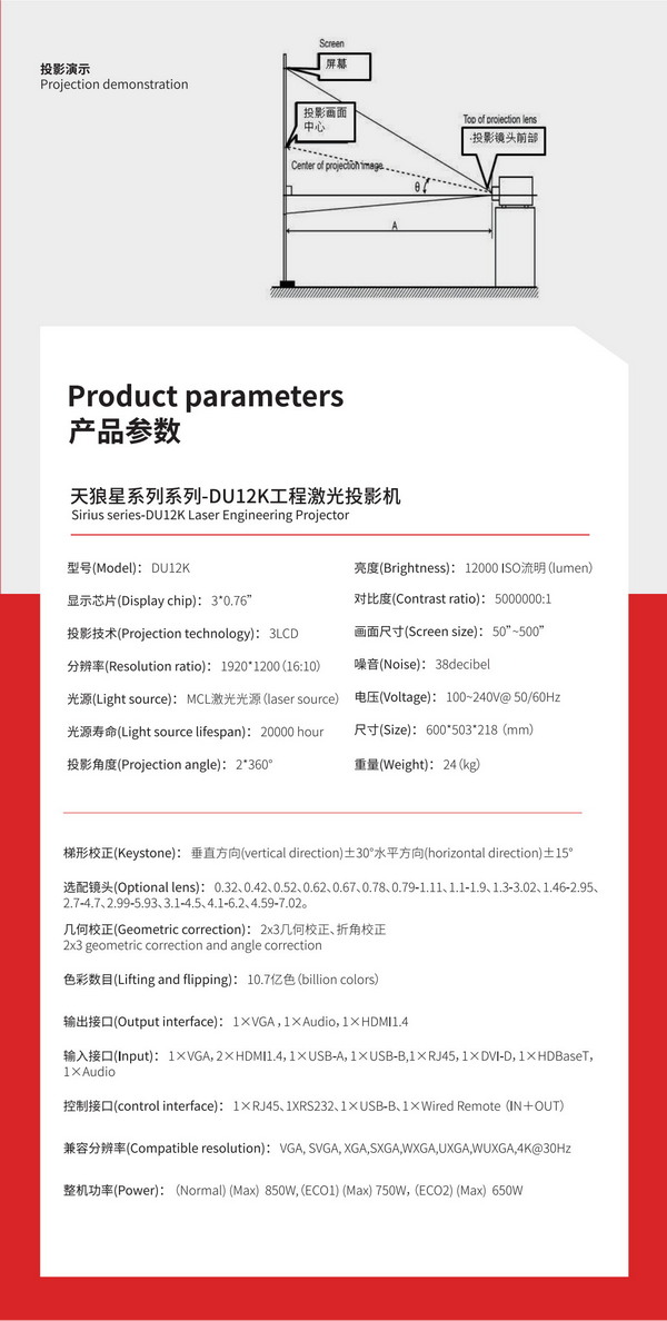 迪恒DU12K投影機(jī)采用3LCD投影技術(shù),搭載日亞新型MCL復(fù)合式激光光源,讓投影畫面色彩更加飽滿,同時,其強(qiáng)大的幾何校正功能,包括4角校正、6角校正、11*17點格點拉伸以及水平和垂直梯形矯正等,讓投影畫面在任何角度、任何位置都能保持完美呈現(xiàn)。為了適應(yīng)不同空間和應(yīng)用場景的需求,迪恒DU12K投影機(jī)提供了豐富的選配鏡頭選項,支持不同投射比鏡頭,輕松應(yīng)對各種復(fù)雜環(huán)境。