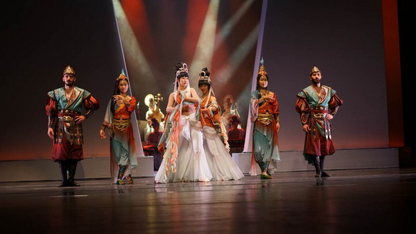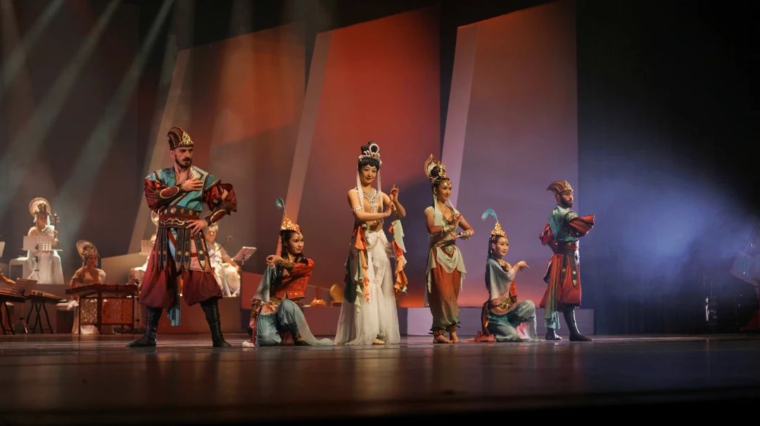 樂動敦煌古樂團以《樂動敦煌》劇目故事為主干,以 “敦煌古樂譜” 為主要內容,以古樂新編的形式,成功創排了《樂動敦煌·盛世妙音》,作品藝術化展現了西域樂師白歆在敦煌莫高窟的音樂探索融合之旅,并最終推動敦煌音樂誕生的故事。