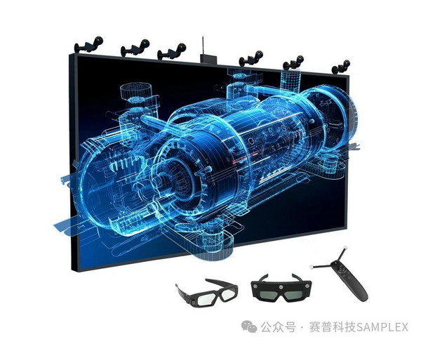 系統配備高精度交互手柄和3D追蹤眼鏡,實時捕捉頭部位置,支持多人同步觀看。動捕相機確保低延時傳輸,3D信號發射器提供穩定同步,適配不同顯示設備,優化性能與經濟性。