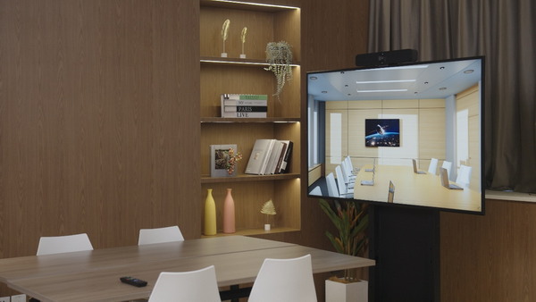 顯示屏成了會議室的標配,以應對日常會議中的內容演示和視頻連線需求,讓身處各地的員工跨越空間界限,仿佛置身于同一個會議室中。