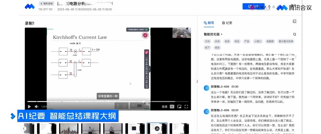 基于云錄制和AI智能紀要,可快速沉淀課堂教學視頻及課程紀要,幫助學生快速找到重難點,同時也方便老師在后臺掌握學生觀看動態,及時改善教學點。