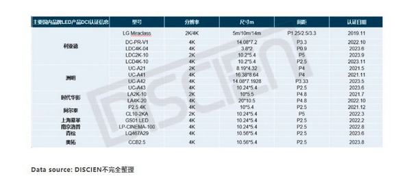 Data source: 《數字電影LED影廳技術要求和測量方法》