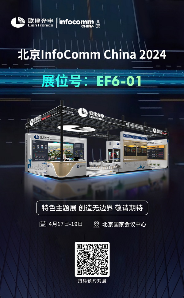 此外,聯建光電將在4月17日-19日亮相北京InfoComm China展會,帶來新技術、新亮點、新產品、新方案,EF6-01展位,期待您的到來!