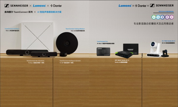 Lumens與Dante的合作由來已久!基于Dante生態(tài)平臺(tái),Lumens推出適合不同應(yīng)用場(chǎng)景的解決方案:企業(yè)會(huì)議室BYOM解決方案、大型會(huì)議室的智能聲像跟蹤解決方案、企業(yè)培訓(xùn)的智能導(dǎo)播解決方案、數(shù)字法庭的混合庭審系統(tǒng)解決方案等。此外Lumens與SENNHEISER也將在本次峰會(huì)上展出AI智能聲像追蹤解決方案!