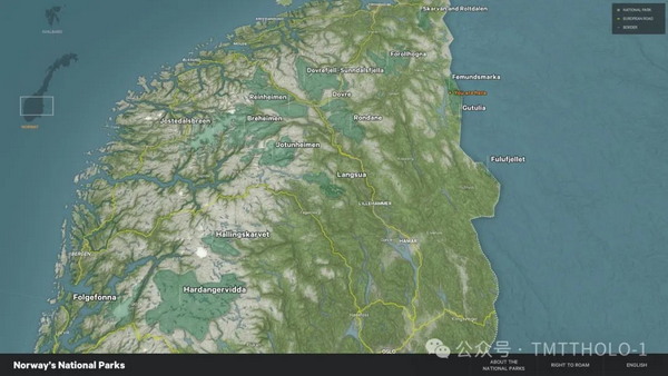 以挪威壯觀的國(guó)家公園為特色的電子地圖互動(dòng)裝置,主要目的是讓游客了解所有公園,并讓他們發(fā)現(xiàn)每個(gè)公園的獨(dú)特之處。