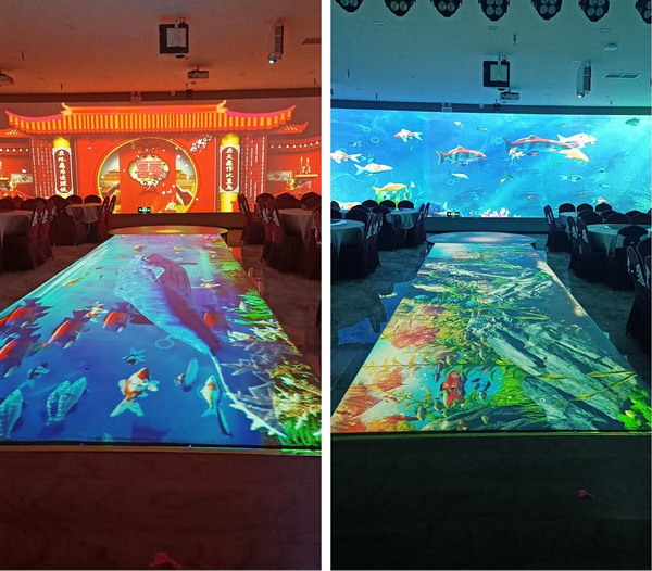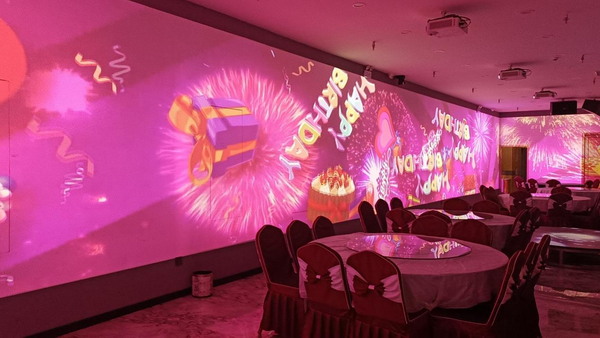 相較于傳統的宴會廳,竇記福宴只需播放與宴會主題相對應的片源,即可實現“一鍵布景”,有效節省物料采買和人力等成本,用更高的性價比吸引消費者前來用餐打卡。此時,投影設備能否投射出色彩真實、代入感強的畫面,則對光影餐廳的氛圍打造至關重要。
