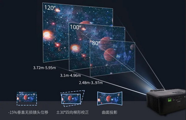 此外,優(yōu)派LX700-4K Ultra具有1.6X大變焦及鏡頭位移,1.4-2.24 投射比,1.6X大變焦鏡頭適應(yīng)影音室、客廳甚至臥室等多樣化環(huán)境場所;同時,垂直鏡頭位移功能讓投影機(jī)具備在不移動投影儀的情況下調(diào)整投影圖像位置。相比小變焦及固定焦距的機(jī)器,LX700-4K Ultra則更加專業(yè)與靈活。
