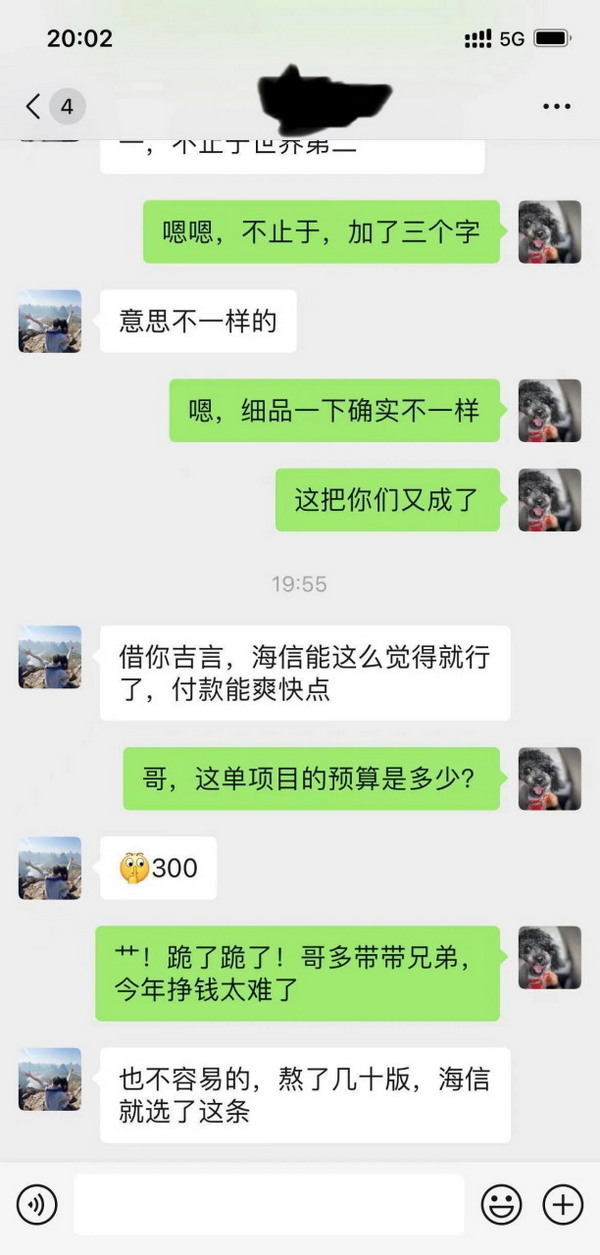 關于這個口號,坊間還有爆料。說一位疑似海信的廣告代理商表示“今年歐洲杯和2022年世界杯的廣告語皆出自他之手。今年廣告語加了‘不止于’三個字”,他還聲稱“歷經幾十版改稿,海信才確認了最終版”,好在“項目預算300萬”。