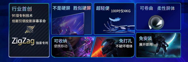 菲斯特將高端激光電視菲涅爾光學(xué)屏幕技術(shù)運用到普通智能投影中,開發(fā)出可以普及的千元百吋大屏Z系列,獨創(chuàng)18項ZigZag專利技術(shù),解決投影大尺寸屏幕既能想平板硬屏一樣的外觀,又能實現(xiàn)卷曲便攜入戶,無損便捷安裝,產(chǎn)品重量僅4kg,單手即可輕松收納轉(zhuǎn)移,解決了平整性、便攜性、高成本等行業(yè)痛點,不是硬屏勝似硬屏,不是畫框勝畫框。