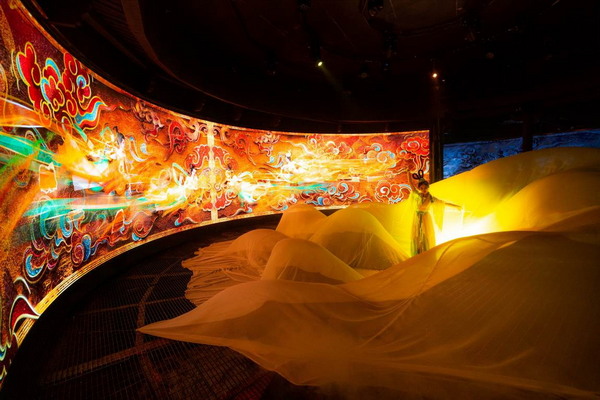 踏入景區(qū)恩澤樓內(nèi),宛若時(shí)光錯(cuò)動(dòng),穿越回千年前島上漁家的各異風(fēng)情!鹅`箸湄洲》表演在此精彩亮相,借助Vivitek(麗訊)工程投影機(jī),以總長(zhǎng)24米、高2.4米的崖刻建筑為幕,在炫彩光影的映射下,呈現(xiàn)出“海上和平女神”媽祖庇佑湄洲島后,百姓安居樂(lè)業(yè)的繁榮景象。光影、壁畫和沉浸式展演,人景互動(dòng),亦真亦幻,帶來(lái)聽(tīng)覺(jué)、視覺(jué)感官多元化的深度觀賞體驗(yàn)。