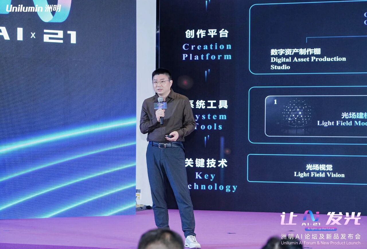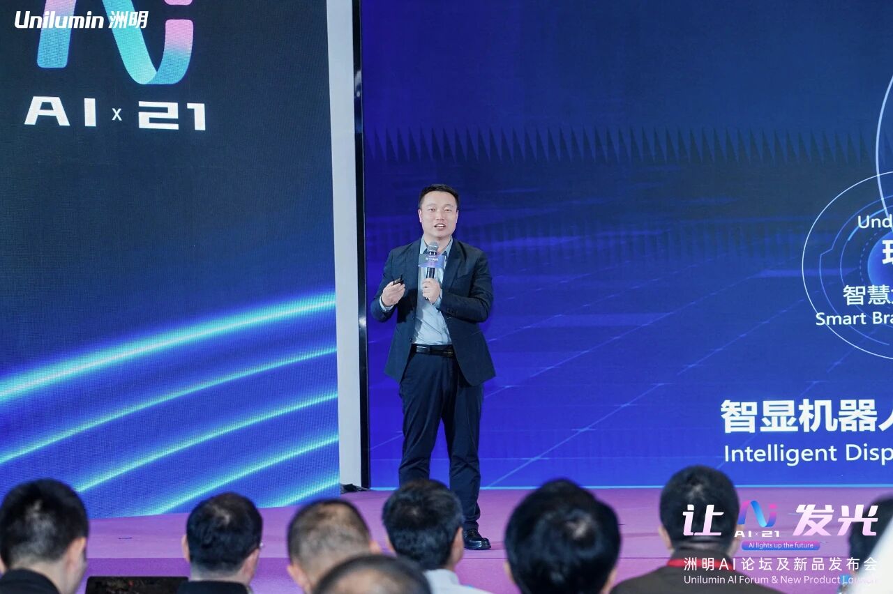 洲明集團中央研究院院長陳黎暄重磅發布洲明AI系列產品,包括全新AI智慧一體機、超級一線通(五合一)、戶外智慧LED等系列產品,全面展示洲明“LED+AI”的技術融合成果。從AI數字內容到數字展陳2.0、智慧會議空間、AI安全播控等解決方案,洲明正在以更高集成創新解決方案,加速構建AI光顯新生態。