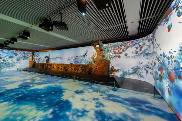 松下投影機在此展項中的巧妙安裝形式確保了場景的完整性,不僅以紗幕構建了一條“呂祖人生畫廊”,更在畫框外投射出動態的白云仙鶴,詩情畫意、仙風道骨之景色盡收眼底。對于影像而言,這或許只是一個簡單易得的方案,然而影像卻憑借其與場景完美融合的顯示特性與內容的可創造性為場景提供了遠超預期的視覺效果,這也正是影像在構建“新文博場景”中不可不談的重要價值。