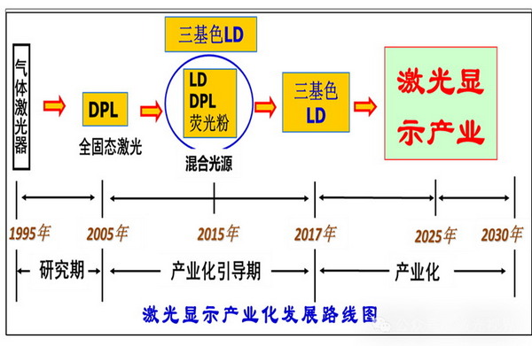 在2012年國家科技部發(fā)布的《新型顯示科技發(fā)展“十二五”專項規(guī)劃》中,明確定義了激光顯示產(chǎn)業(yè)戰(zhàn)略地位,大力發(fā)展激光顯示和3D顯示為代表的下一代顯示技術(shù)。針對我國激光顯示產(chǎn)業(yè)的發(fā)展提出了明確的目標(biāo):年產(chǎn)值達100億元,影院系統(tǒng)占有率達30%。