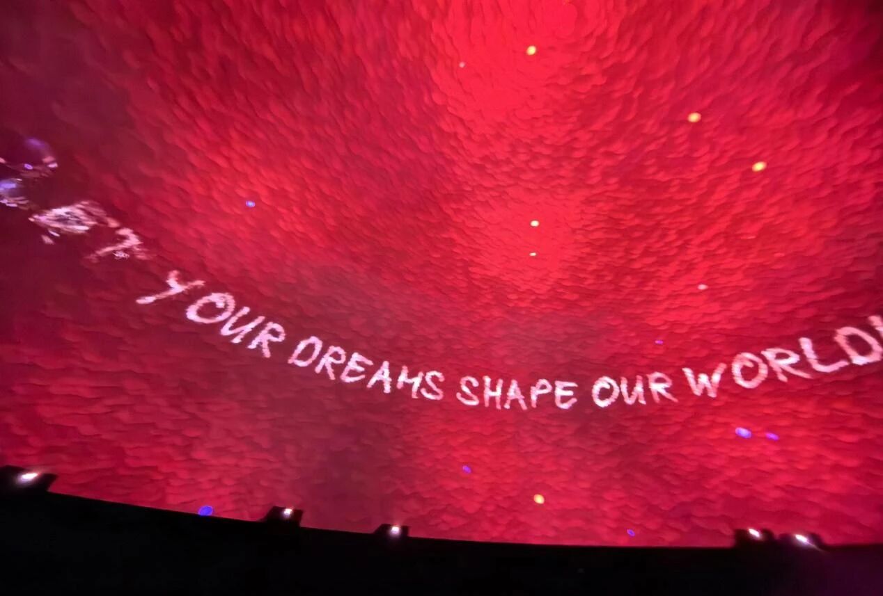 巨型球幕電影環節,穹頂被絕美的景色覆蓋,象征著夢想的色彩點亮夜空。應用于此的松下投影機以四倍像素驅動