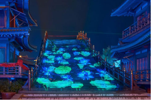 | 古城襄陽(yáng),唐城影視基地內(nèi),耗資2.5億的《盛世唐城之大唐倚夢(mèng)》,由近400名專業(yè)演員依托40萬(wàn)平方米仿唐建筑群為背景的大型嵌入行進(jìn)式全景秀每晚上演。作為《盛世唐城之大唐倚夢(mèng)》的主要影像設(shè)備,Vivitek(麗訊)共采用了38臺(tái)亮度為18,000 流明的激光工程投影機(jī)DU9800Z,分布在花萼樓、虹橋、朱雀門(mén)、德勝門(mén)等著名長(zhǎng)安城景點(diǎn),其中花萼樓共使用12臺(tái)Vivitek(麗訊)DU9800Z激光工程投影機(jī),虹橋、朱雀門(mén)和德勝門(mén)則分別使用了2臺(tái)、20臺(tái)和4臺(tái),通過(guò)拼接、融合的方式投射出震撼清晰的3D影像,完美詮釋了裸眼建筑3D投影的震撼效果。 | 《盛世唐城之大唐倚夢(mèng)》旅游項(xiàng)目通過(guò)演藝節(jié)目與國(guó)際目前最先進(jìn)的舞美技術(shù)和設(shè)備相結(jié)合。利用視覺(jué)沖擊的裸眼3D、多層次的空中威亞、炫目震撼的燈光秀及美輪美奐的水秀表演等聲光電高科技的方式打造一臺(tái)具有創(chuàng)新意識(shí)的原創(chuàng)觀感體驗(yàn)秀。從凱旋樓、明德門(mén)、朱雀廊、東西市到皇城內(nèi)的全景式演繹中,多方位打造一個(gè)立體、互動(dòng)、時(shí)尚的景觀,為每一位客人帶來(lái)視覺(jué)的震撼,讓大家觀賞到氣勢(shì)恢宏的大唐雄風(fēng),感受到濃郁的盛唐風(fēng)情,將大唐夜游文化再次打造成為全民關(guān)注的熱點(diǎn)。 |