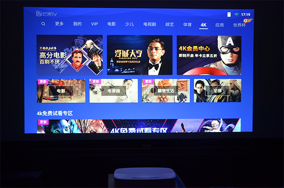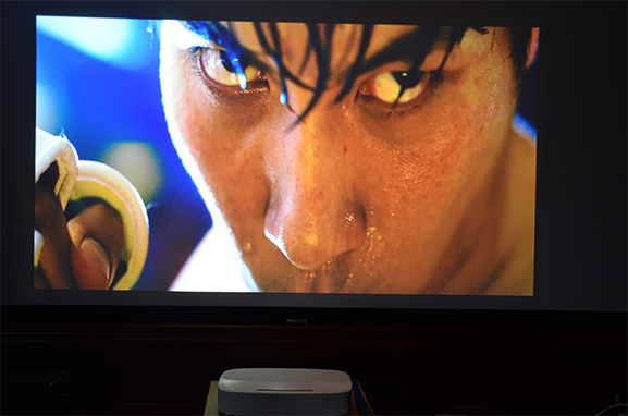 LUNE官方公布亮度高達采用了2700ANSI流明(相當于光源亮度9300流明),旗艦級激光電視采用 0.65”DMD 光機,超出0.47”DMD 反光面積90% 。從實際體驗來看,開燈與關燈實拍圖,顯然關燈的色彩效果更加顯著,開燈圖色彩沒有關燈圖鮮艷,但也達到日常觀影的需求,所以,不論白天還是夜晚,極米皓·LUNE讓你在家也可以體驗影院級的體驗感,夜晚觀看效果更佳!