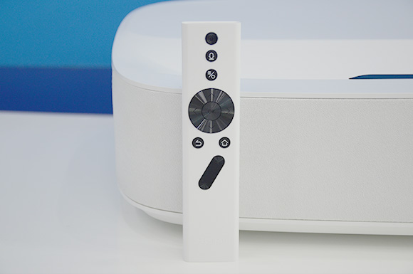 LUNE遙控器配合主機色調(diào),同樣的潔白主色調(diào),配合簡單的圖示按鍵。沒有繁多的按鍵,讓人產(chǎn)生眼花繚亂的感覺,僅七個按鍵便可操作幾乎所有功能,隨意切換,手動、語音搜索就是這么簡單!